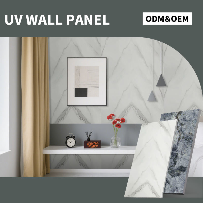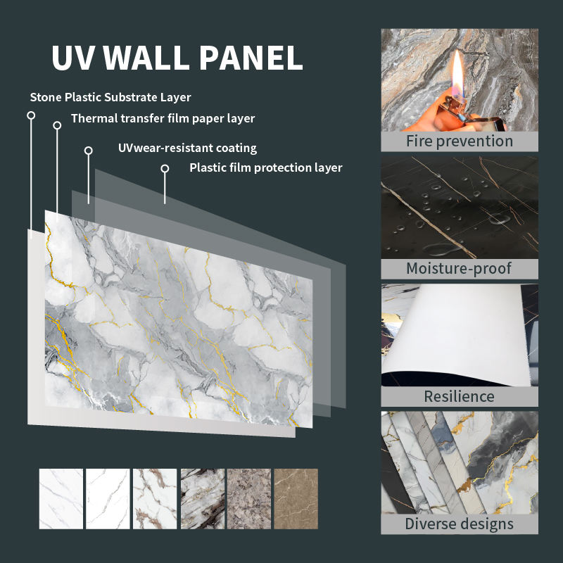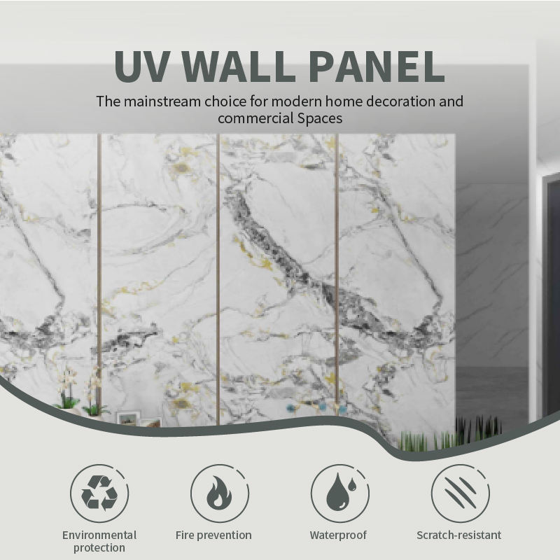 Panneau mural UV direct d'usine, décoration dorée, grain de marbre blanc lavé, feuille de marbre PVC, matériau décoratif d'intérieur