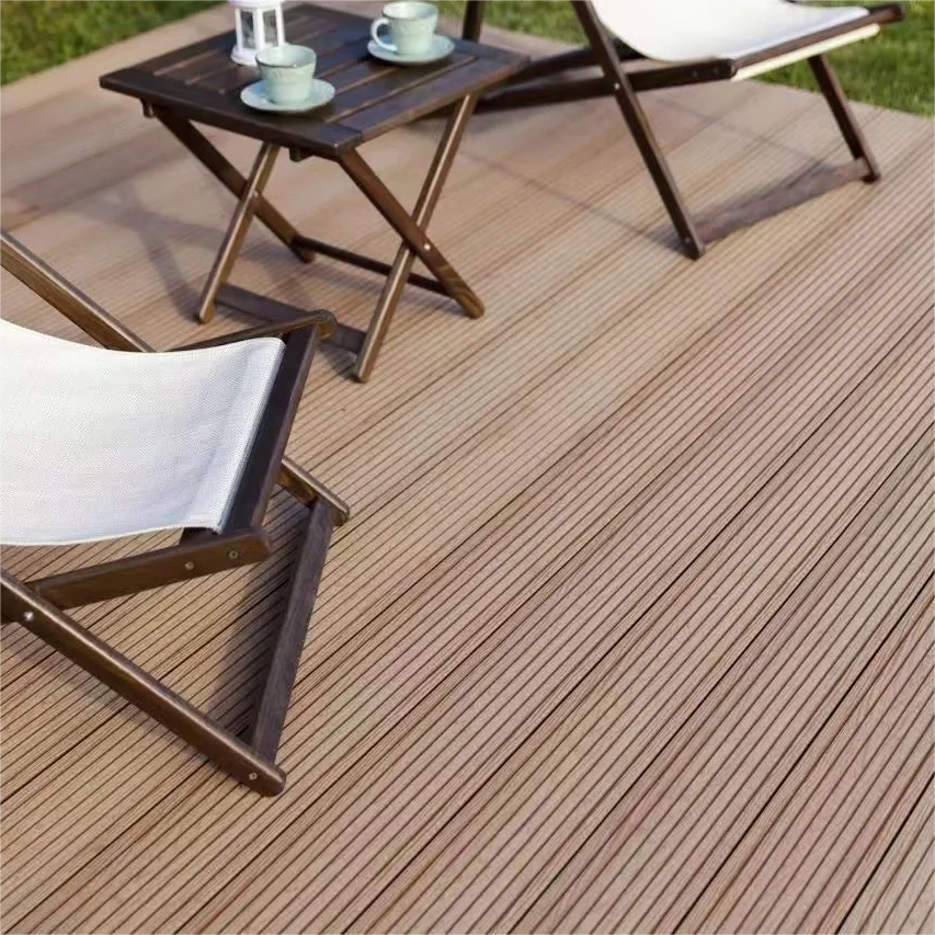 Planches de terrasse extérieures WPC en composite bois-plastique à rayures droites, directement de l'usine, pour jardins et piscines