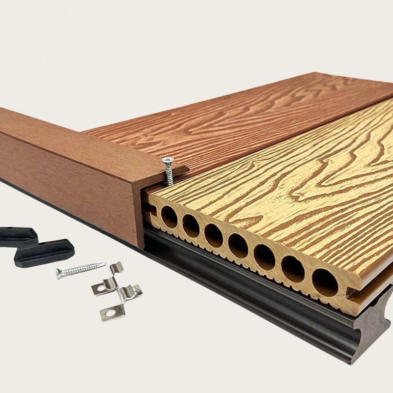 Plancher de terrasse WPC imperméable directement de l'usine, dernière version, grain de bois 3D, terrasse extérieure en composite bois-plastique WPC