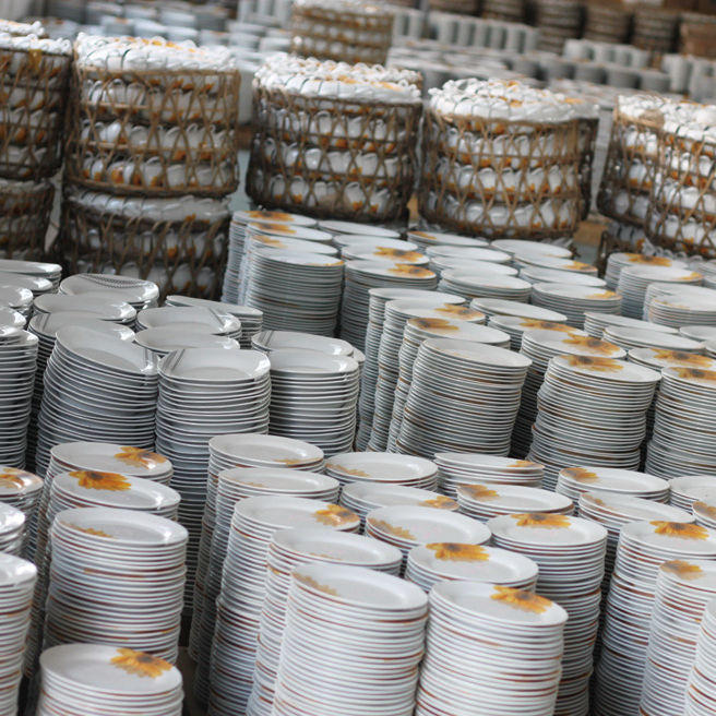 Vaisselle de Restaurant en Céramique Blanche Direct Usine, Assiettes et Bols Mixtes, Vente en Gros à Prix Abordable, par Carton