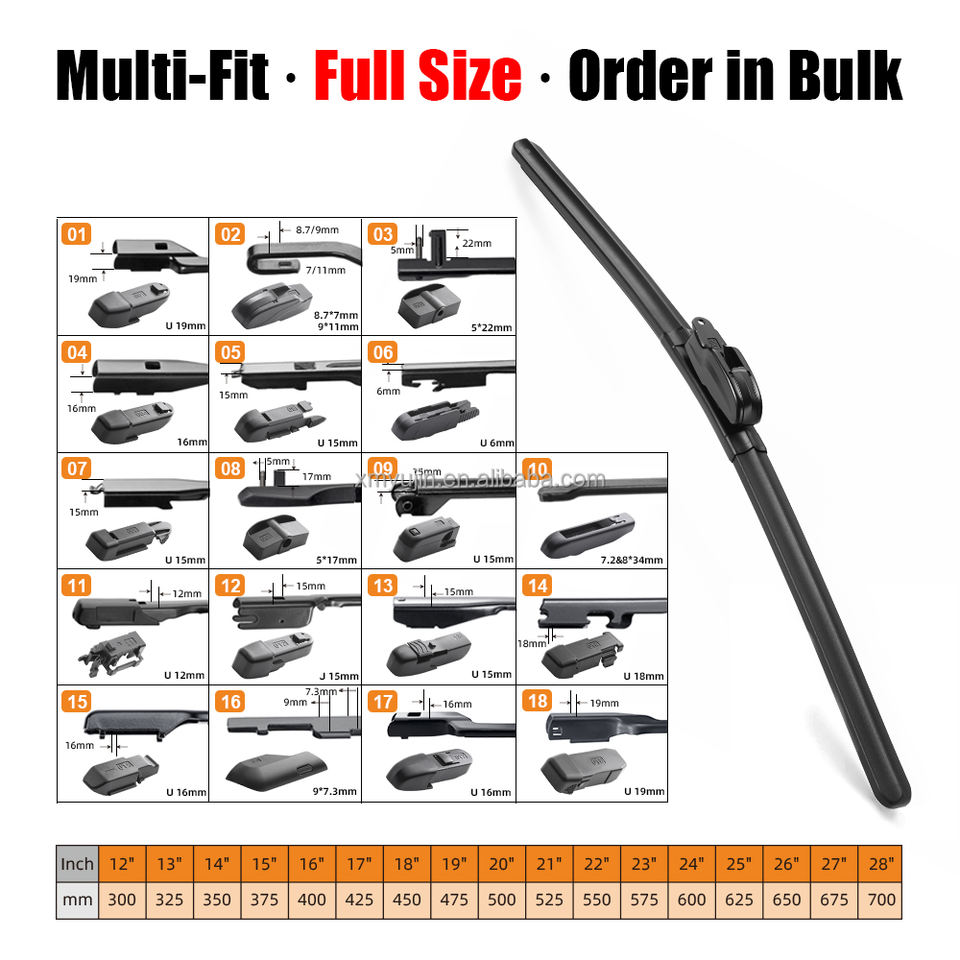 Bras d'essuie-glace applicables:18 adaptateurs pour différents bras