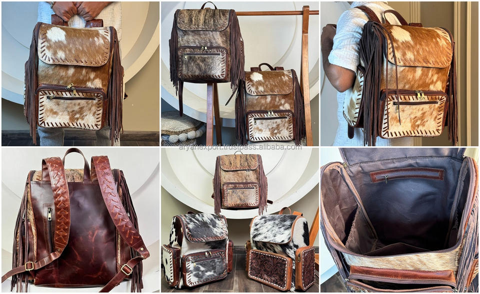 Véritable cuir de vachette frange couche sac à dosNom du produit