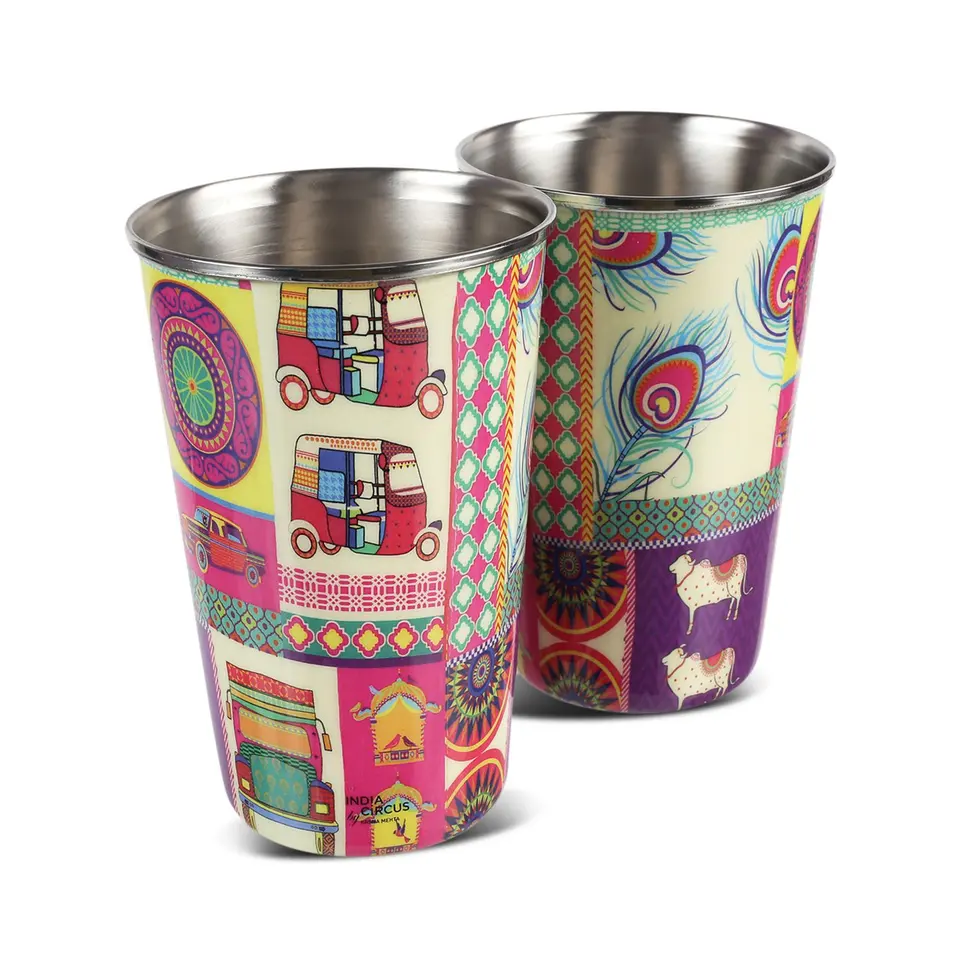 Usine directe en gros bonne qualité émail imprimé design jus et lait servant un verre à eau qualité durable meilleure vente