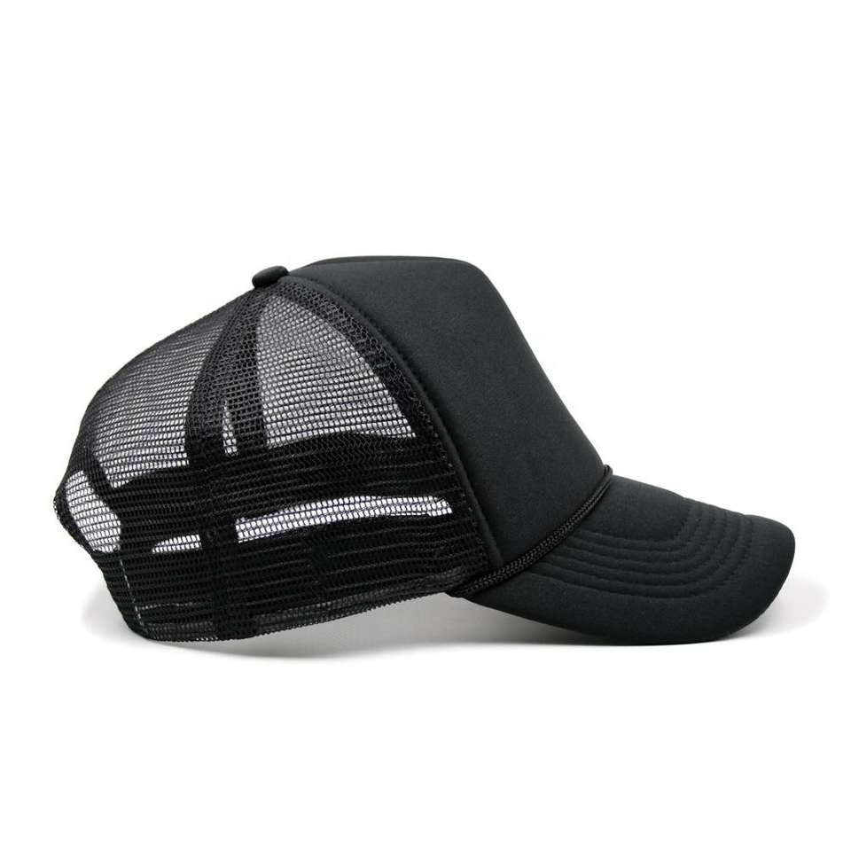 Casquette Trucker Unisexe Noire en Mousse et Maille à 5 Panneaux, Personnalisable avec Logo, Haute Qualité, Vente en Gros Direct Usine, Gorras Sportives