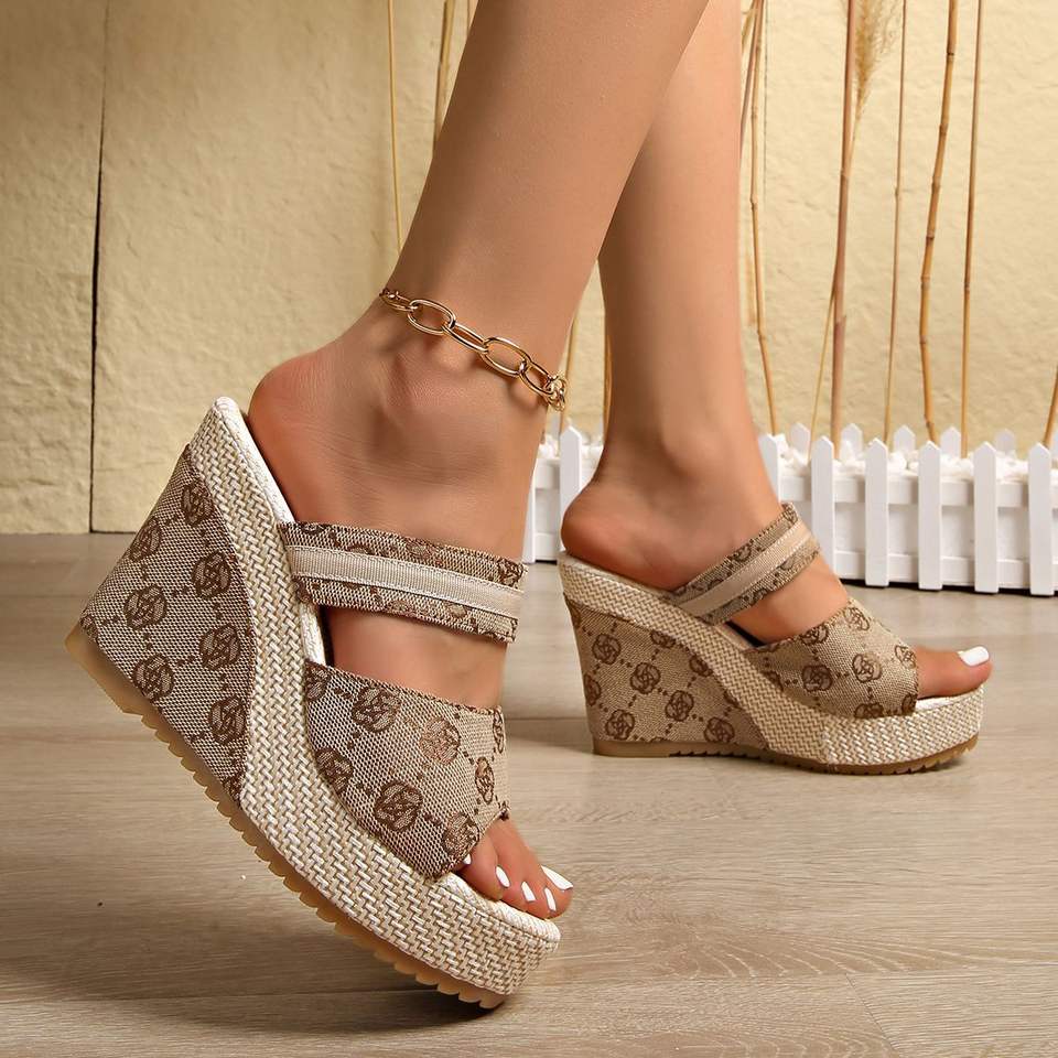 Vente en gros directe usine : Sandales à bout ouvert, sandales en toile, sandales d'été à talons compensés, sandales tendance