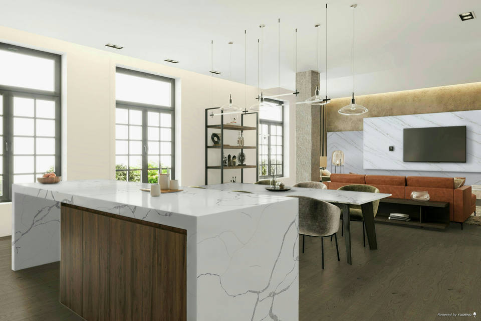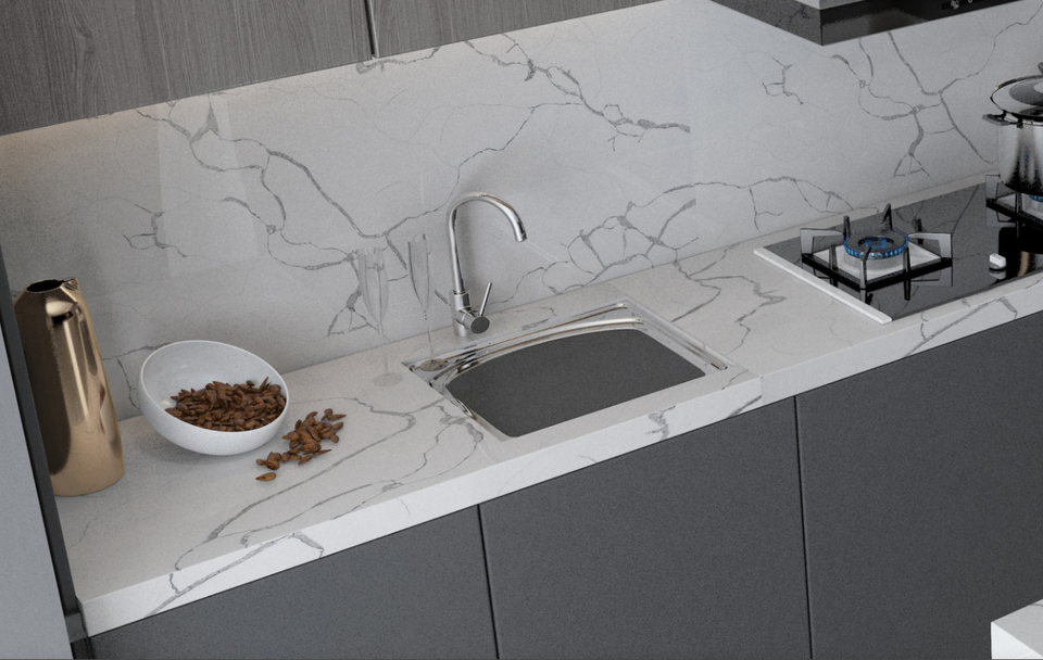 Comptoirs de cuisine et de salle de bain en quartz, style moderne, série Calacatta, avec vanité et dessus de table directs d'usine