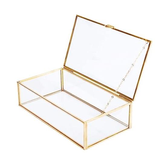Fournisseur en gros direct d'usine boîte à bagues en métal et en verre boîte de rangement de bijoux de taille personnalisée de la meilleure qualité