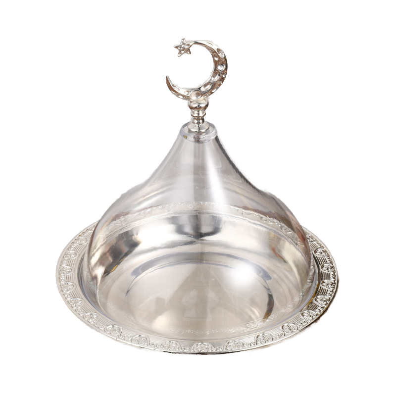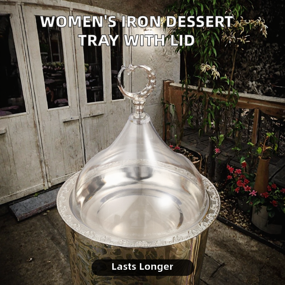 Plateau de rangement pour desserts en fer électroplaqué couleur unie, durable, avec couvercle en acrylique transparent, idéal pour les fêtes – Vente directe usine