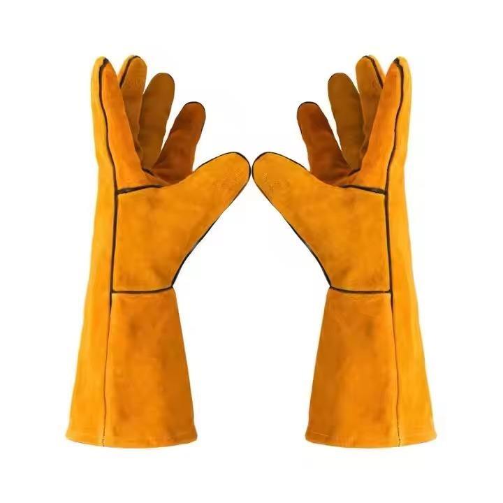 Gants de soudage en cuir de vachette à deux couches de taille XL directe d'usine longs gants de soudage épaissis doublés de polaire ignifuge