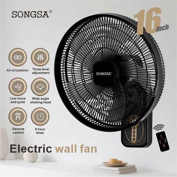 Ventilateur mural oscillant numérique à télécommande, 16 pouces, électrique, écoénergétique, moderne, refroidissement par air, directement de l'usine