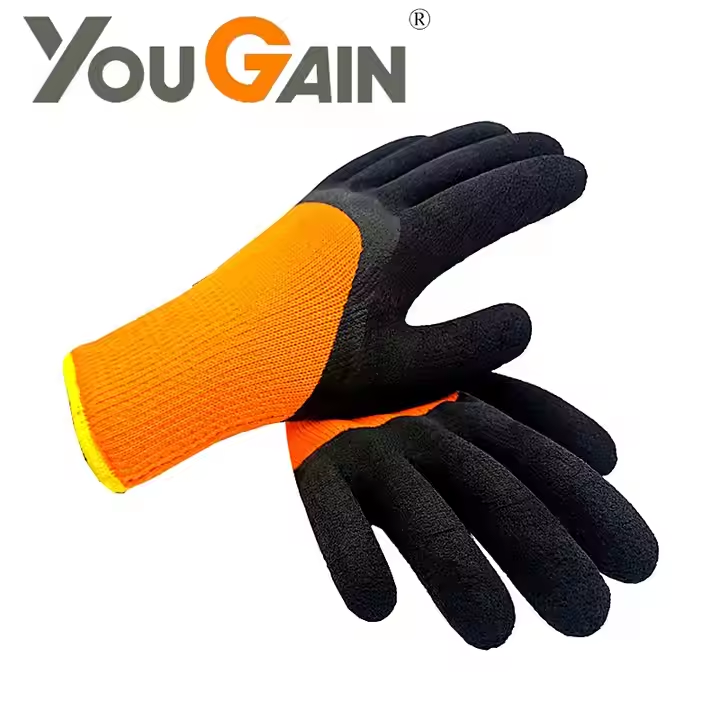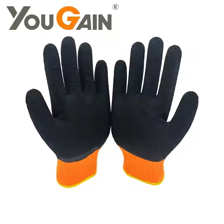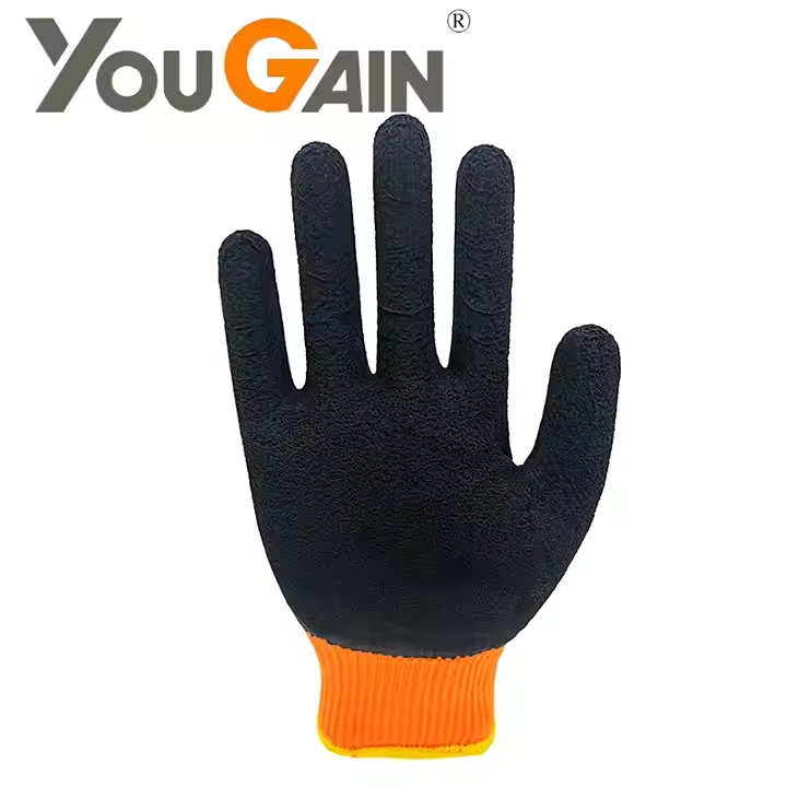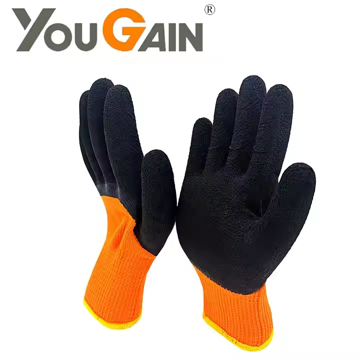 Vente directe d'usine gants thermiques d'hiver gants de sécurité résistants au froid guantes revêtement froissé en latex avec doublure en éponge polyester 7g