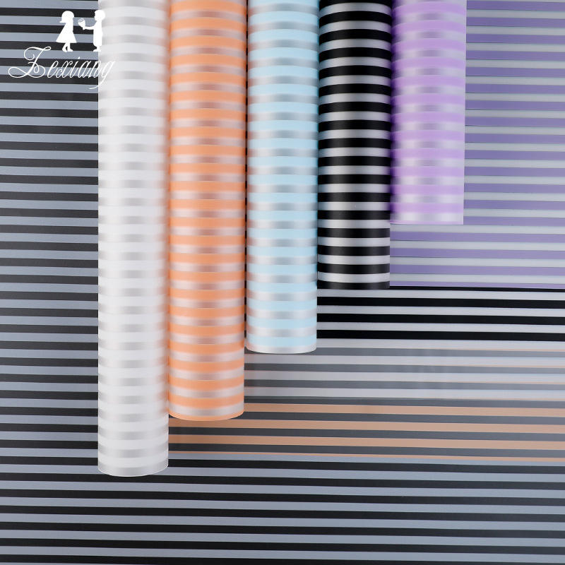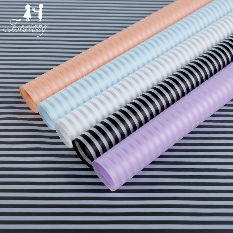 Ventes directement étanches en usine 10 couleurs 58*58 papier autocollant mat à rayures douces et ravissantes papier d'emballage de fleurs pour fleurs
