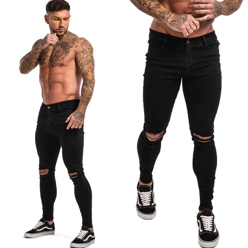 Jeans bleus déchirés skinny stretch denim pantalon brodé style droit de créateur pour hommes directement de l'usine en gros