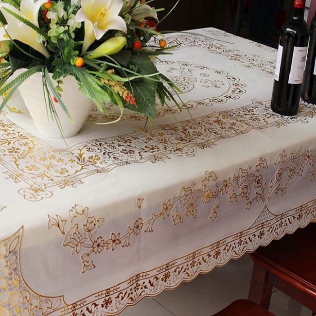 Usine directement en gros étanche à l'huile Pvc plastique vinyle dentelle nappe rouleau couverture de Table tissu mariage 137*181cm