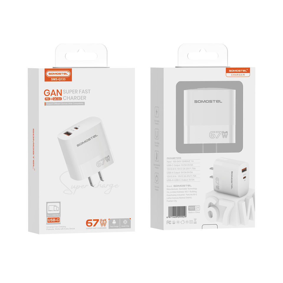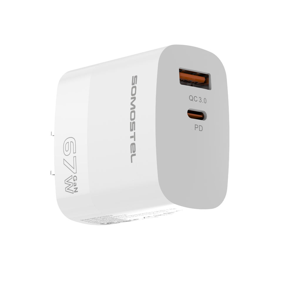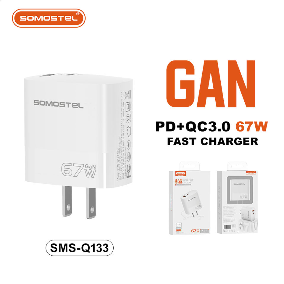 Chargeur de voiture double port USB-C PD et USB-A QC3.0 67W en matériau GaN, charge ultra-rapide pour téléphones Android