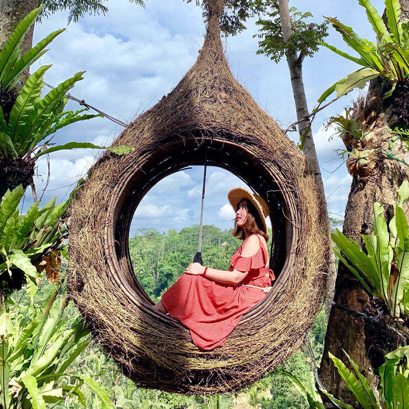 Chaise à bascule extérieure durable d'usine Double panier suspendu chaise en osier nid d'oiseau balançoire extérieure