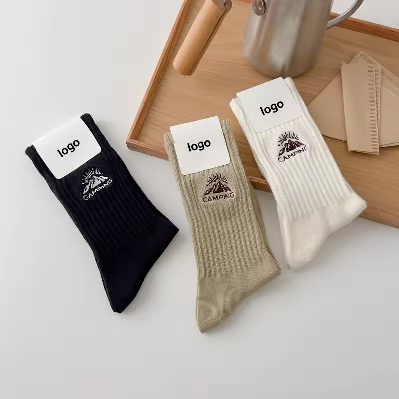 Chaussettes en coton avec logo brodé en usine, chaussettes brodées personnalisables, haute qualité, vente en gros