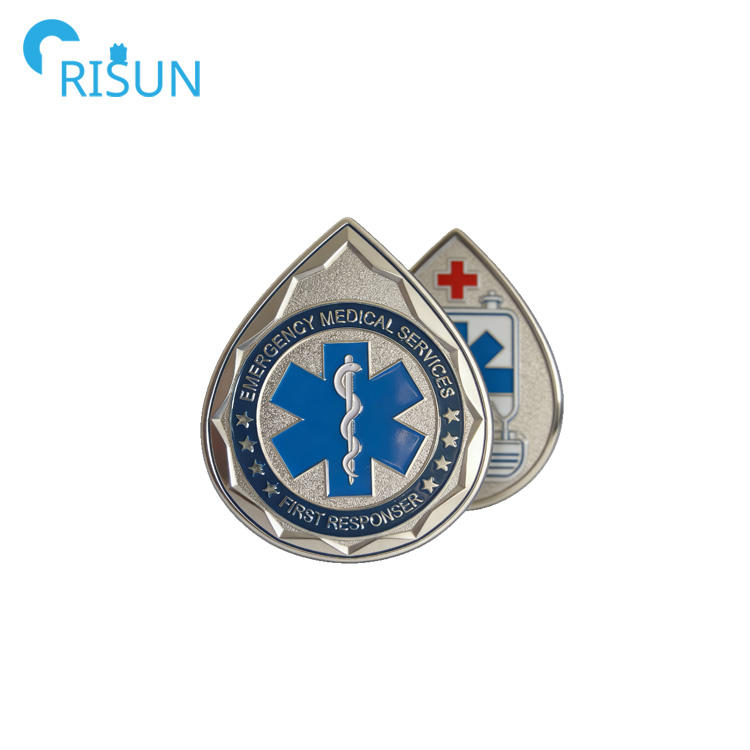 Épinglette de défi personnalisée avec logo pour les services médicaux d'intervention d'urgence, émail d'usine, pour médecins, infirmières et premiers secours