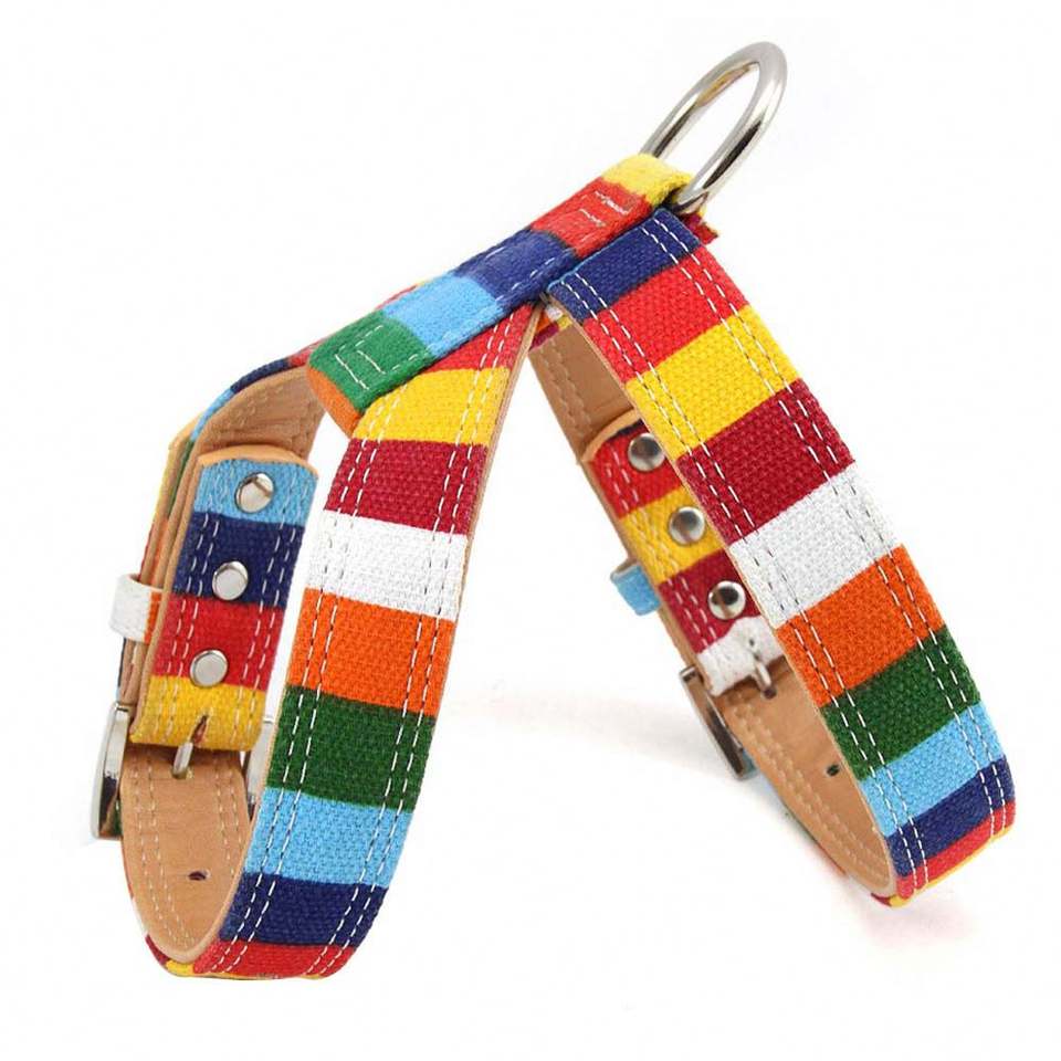 Harnais coloré pour animaux de compagnie Factory Express, laisse de maintien à la main, collier pour chien en toile et cuir PU