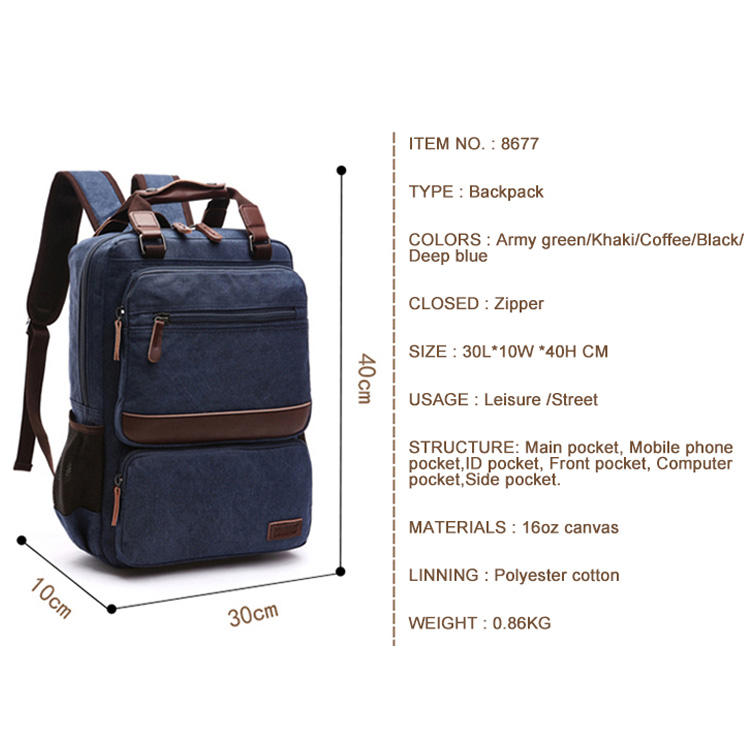 Usine Mode Toile Coton Sac À Dos Durable Collège Style Café Natty Sac À Dos pour L'école