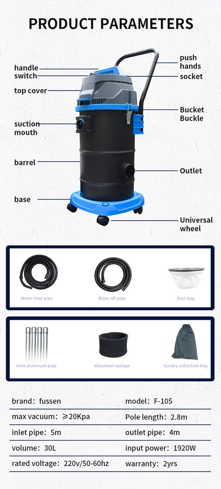 Usine étang à poissons piscine sèche et humide main tenir 30L aspirateur de piscine avec diverses buses d'aspiration