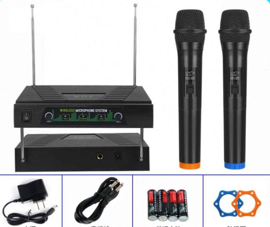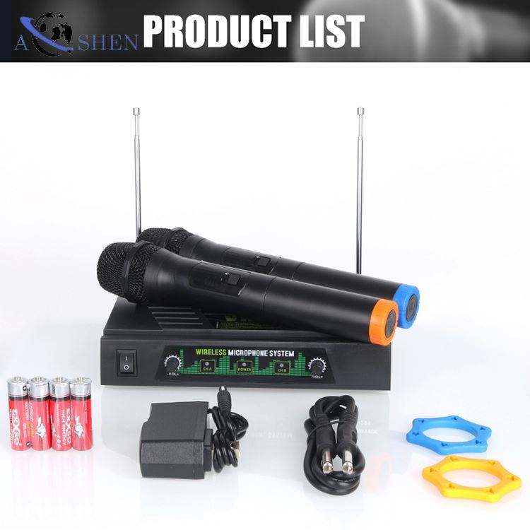 Microphone sans fil VHF à 2 canaux, fabrication OEM gratuite, microphone portable pour fête, conférence, enregistrement, direct, karaoké à domicile, double canal