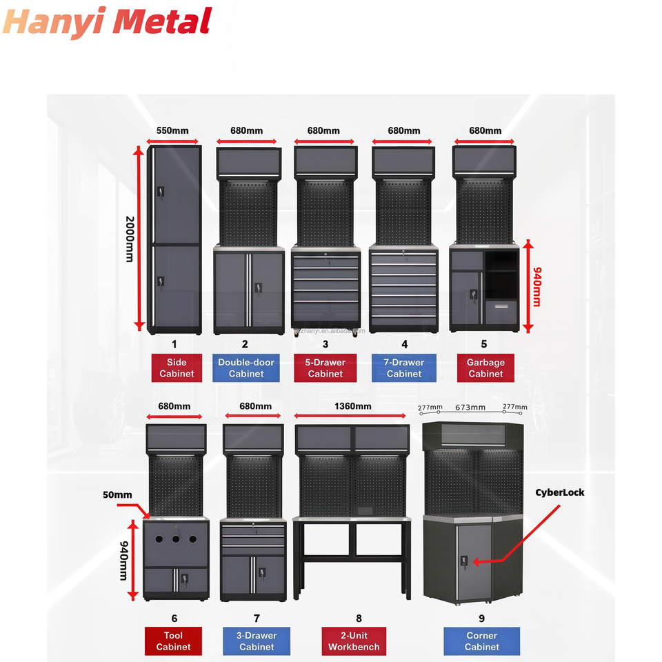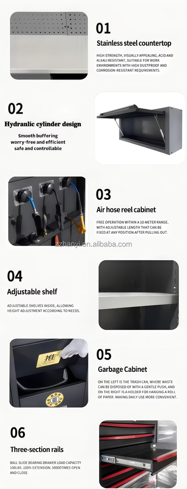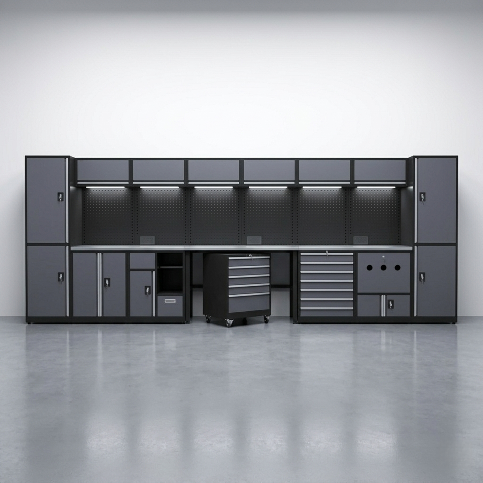 Armoire à outils multifonctionnelle en acier inoxydable sur mesure pour garage d'usine, établi de rangement robuste