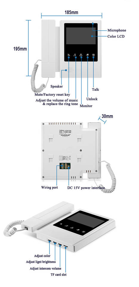 Système d'interphone vidéo de porte avec moniteur de 4,3 pouces et 5 boutons de qualité supérieure pour la sécurité de l'appartement et de la maison