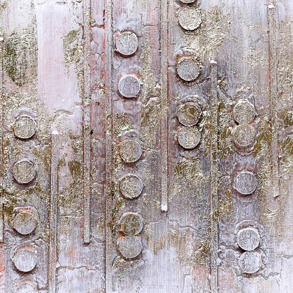 Peinture murale abstraite à rayures en bois, peinte à la main, techniques mixtes, pour salon