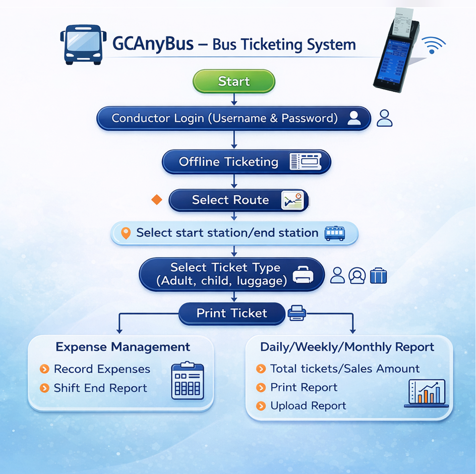 Terminal de point de vente portable Android 10 avec imprimante thermique pour système de billetterie de bus, solution logicielle en ligne ou hors ligne, machine de point de vente