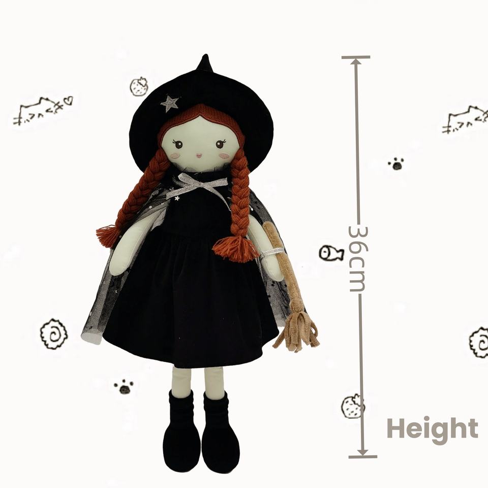 Usine Fait À La Main Jolie 36cm Enchanté Jardin Sorcière Doux Poupée Jouet En Peluche Doux Fille Poupée avec Balai-Tenue Noire