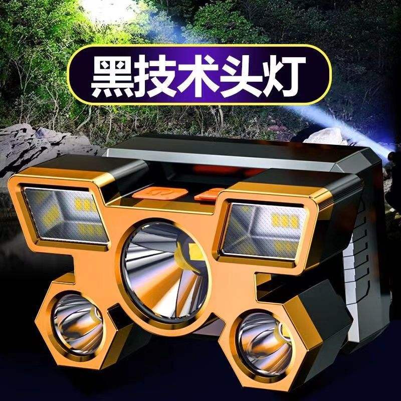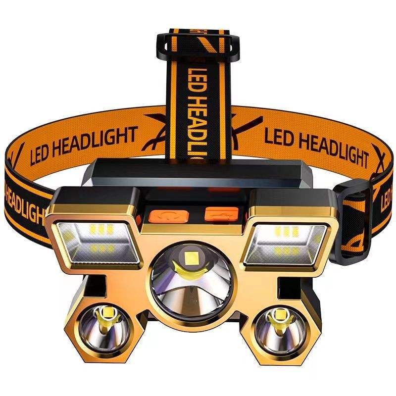 Lampe frontale LED rechargeable ultra-lumineuse longue portée pour l'extérieur, lampe minière or et gris