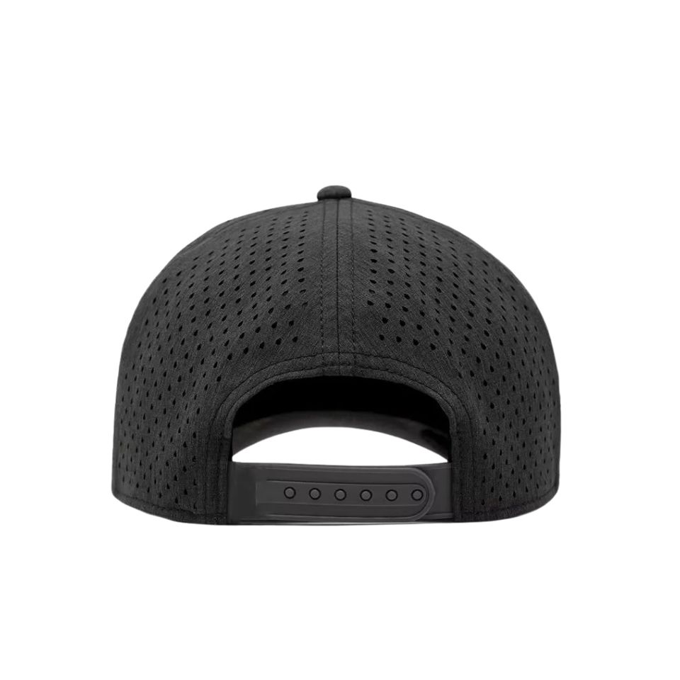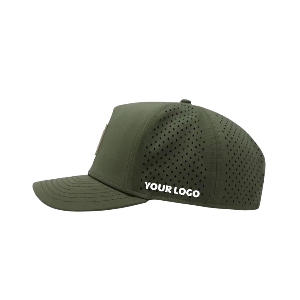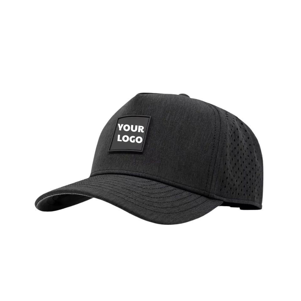 Casquettes de golf imperméables haute performance, 5 panneaux, avec trous découpés au laser, logo personnalisé en caoutchouc PVC sous la visière, en tissu, pour le sport