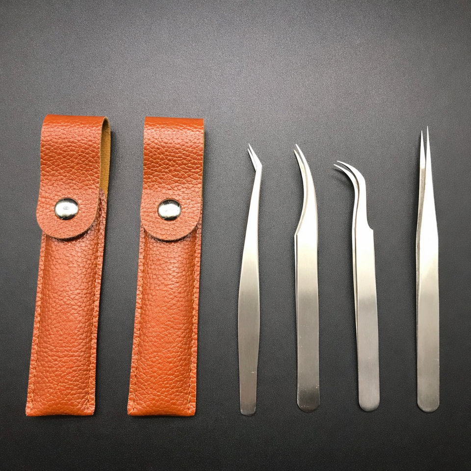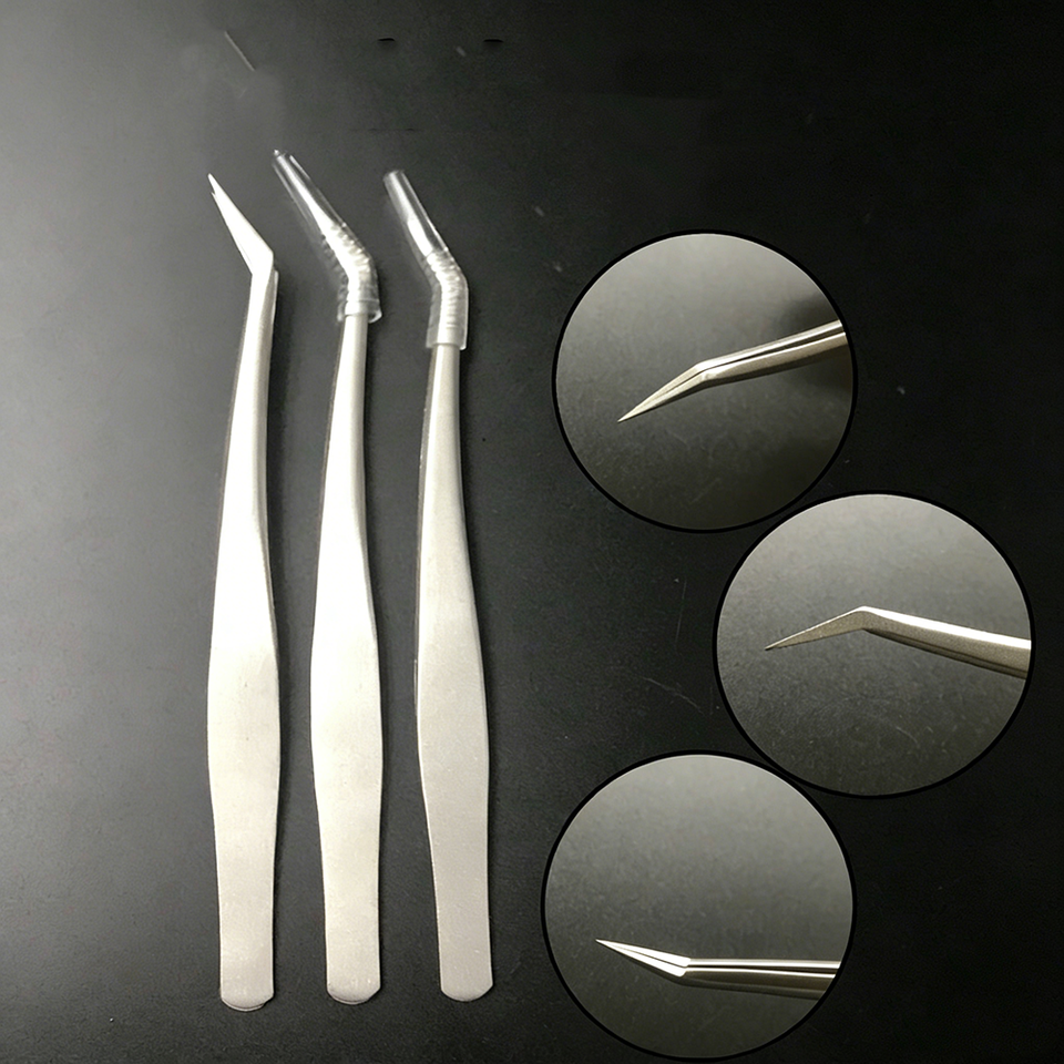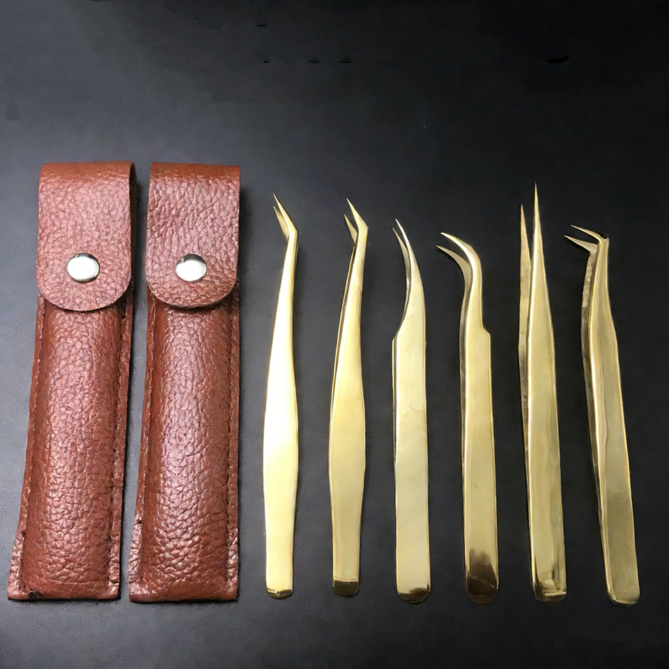 Ensemble de pinces à épiler pour extensions de cils en acier inoxydable de haute précision | Pince à épiler Dolphin Curler Gold Feather Blooming