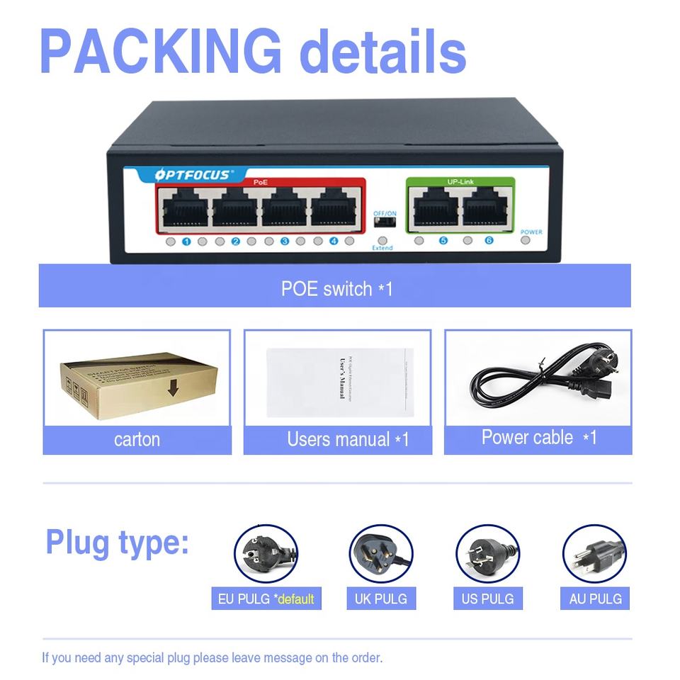 High-Quality Construction: The OptFocus 10/100M PoE Smart Switch is built with a sturdy design, ensuring reliable performance and durability, ideal for long-term use in various environments, including those with extreme temperatures (-40 ~ +85°C) and humidity levels (10%~95%).