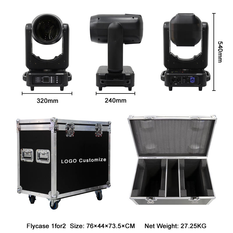 2 dans 1 cas de mouche. Quatre crochets. Manuel d'utilisation. Deux dmx512 ligne. Deux lignes de câble de prise de puissance, 2 corde de sécurité. Logo personnalisé impression
