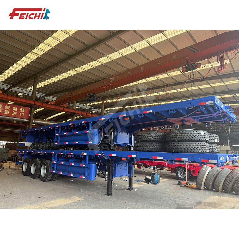 Offre Spéciale en usine 3 essieux 20FT conteneur d'expédition conteneur semi-remorque à plat de camion avec traversin remorques