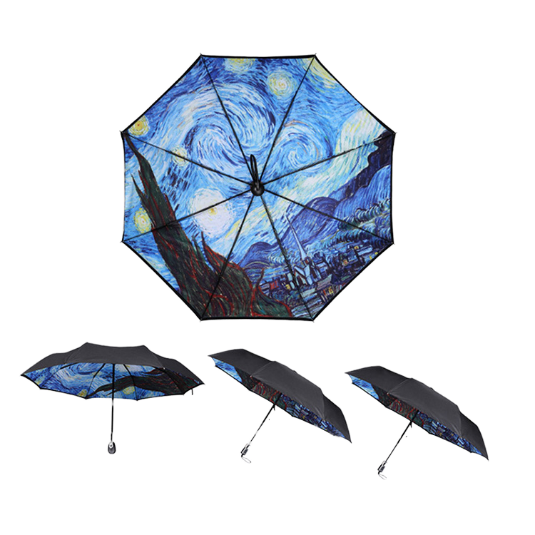 Parapluie pliable automatique 3 sections de 23 pouces, couleur personnalisée, vente chaude en usine