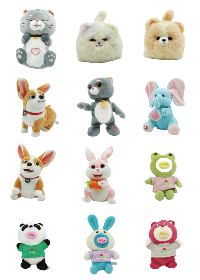 Vente chaude d'usine : Jouets en peluche robot tendance Kawaii pour machine à griffes, incluant des modèles de veau et d'éléphant rouges, fabricant de jouets en peluche électroniques