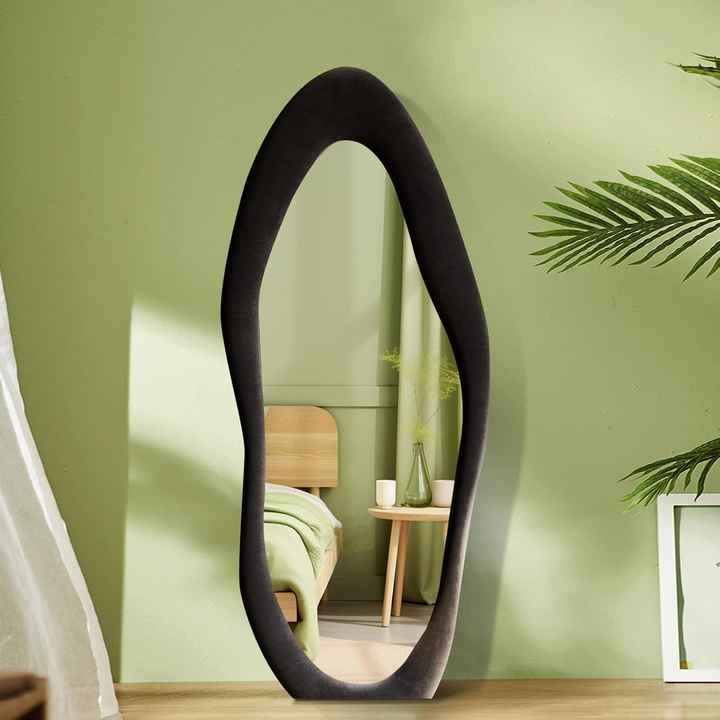 Usine Offre Spéciale grande longueur irrégulière mur ondulé miroir décor flanelle douce enveloppé vague debout sol accrocher mur miroir