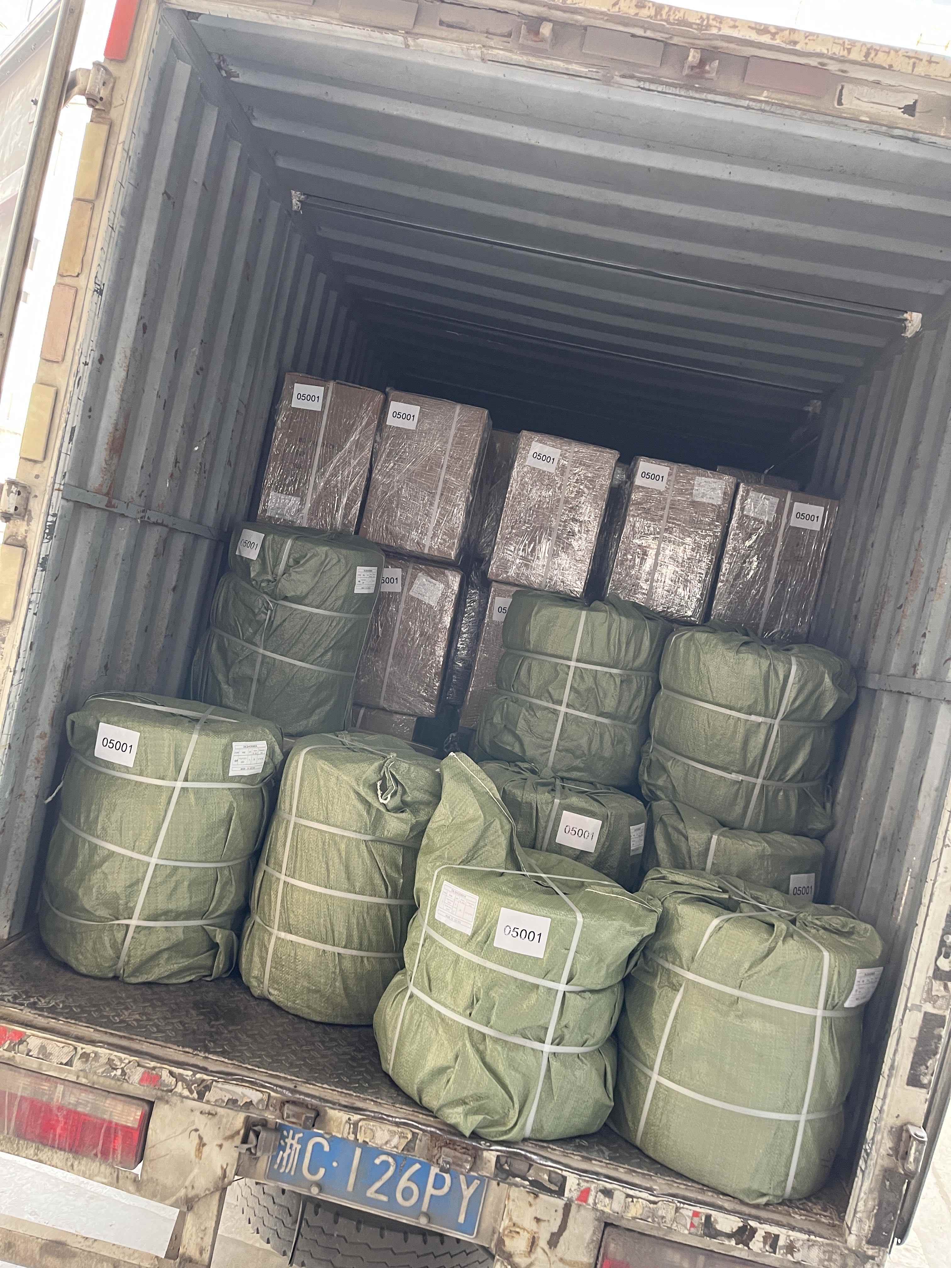 Emballage de carton, sac tissé en plastique à l'extérieur avec sangle d'emballage