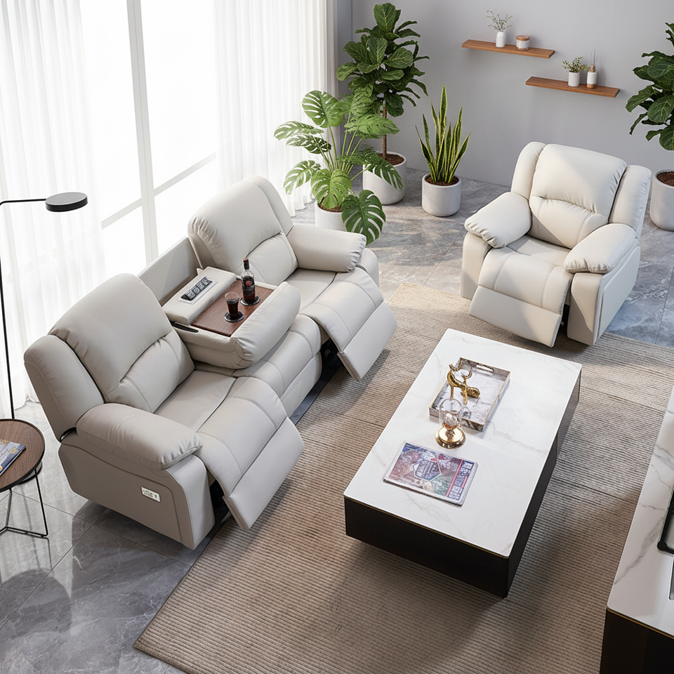 Canapé inclinable électrique moderne en cuir PU, ensemble 3+1, avec port USB, pour salon – Vente chaude usine