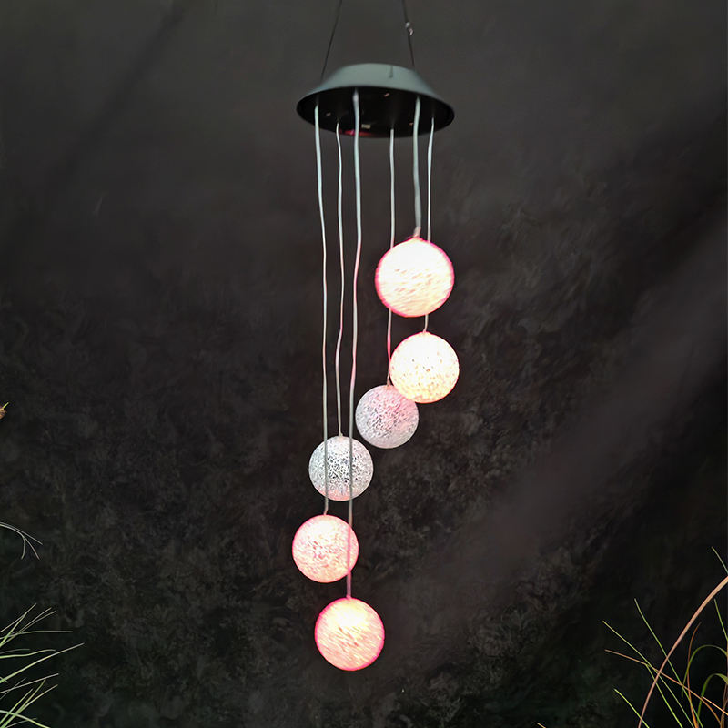 Factory Hot Sale Solar Powered Crystal Ball Wind Chime Color Changing LED Mobile Solar Light Outdoor Decoration Indoor Plastic