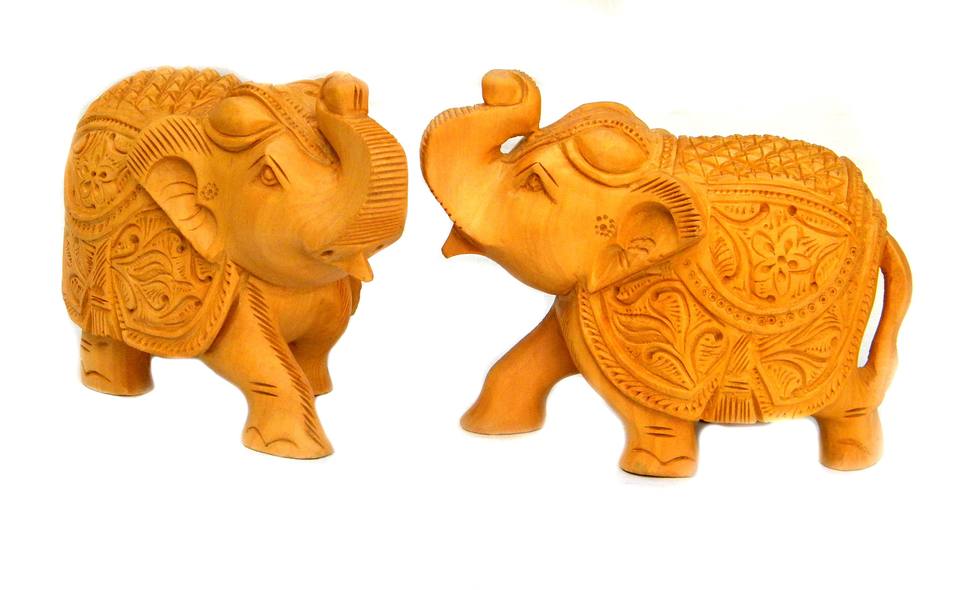 Statue d'éléphant en bois sculpté et découpé, 10 et 12 pouces, vente chaude d'usine, fournisseur, décoration d'intérieur