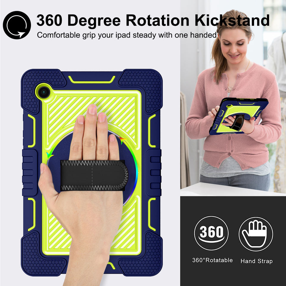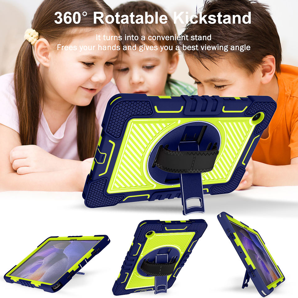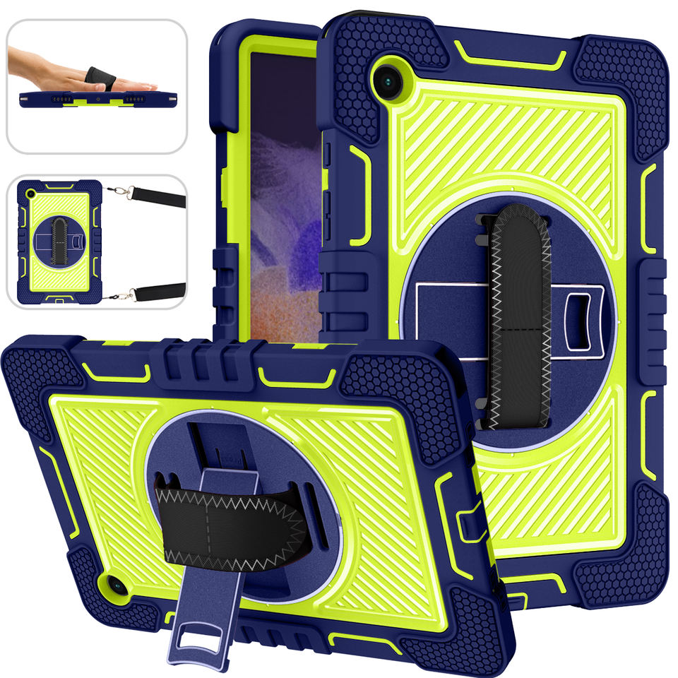 Étui pour tablette robuste bleu marine + jaune vert Offres Spéciales d'usine avec support à l'arrière pour Samsung Tab A 8 2021