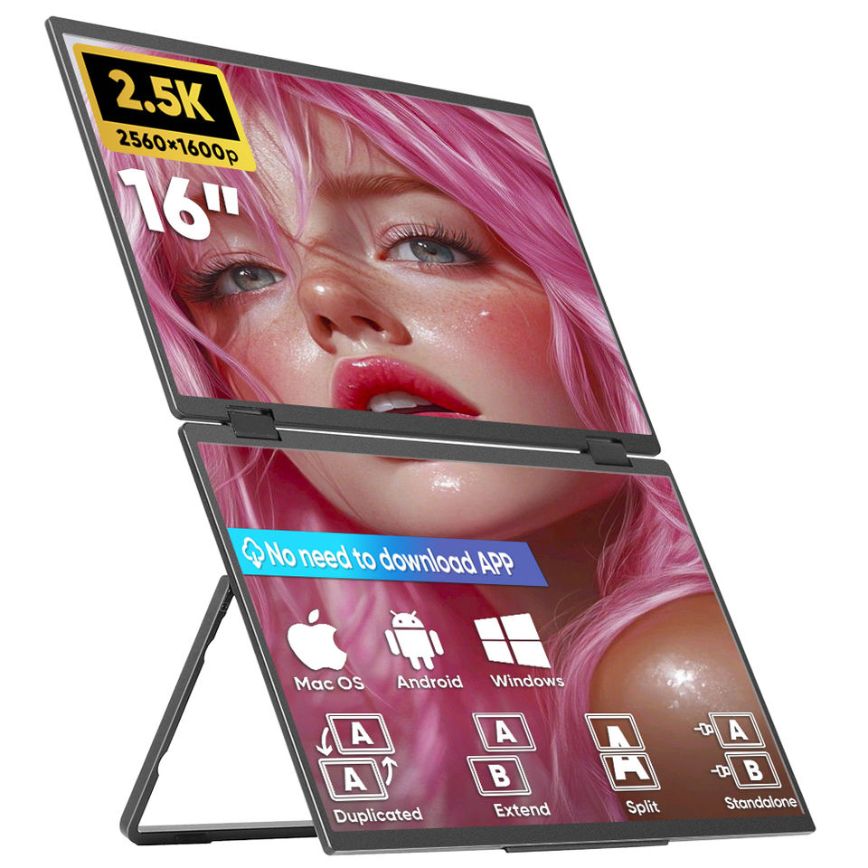 Moniteur portable USB Type-C 2,5K de 16 pouces, double/triple écran pour ordinateur portable, extension d'écran avec panneau IPS – Vente chaude usine