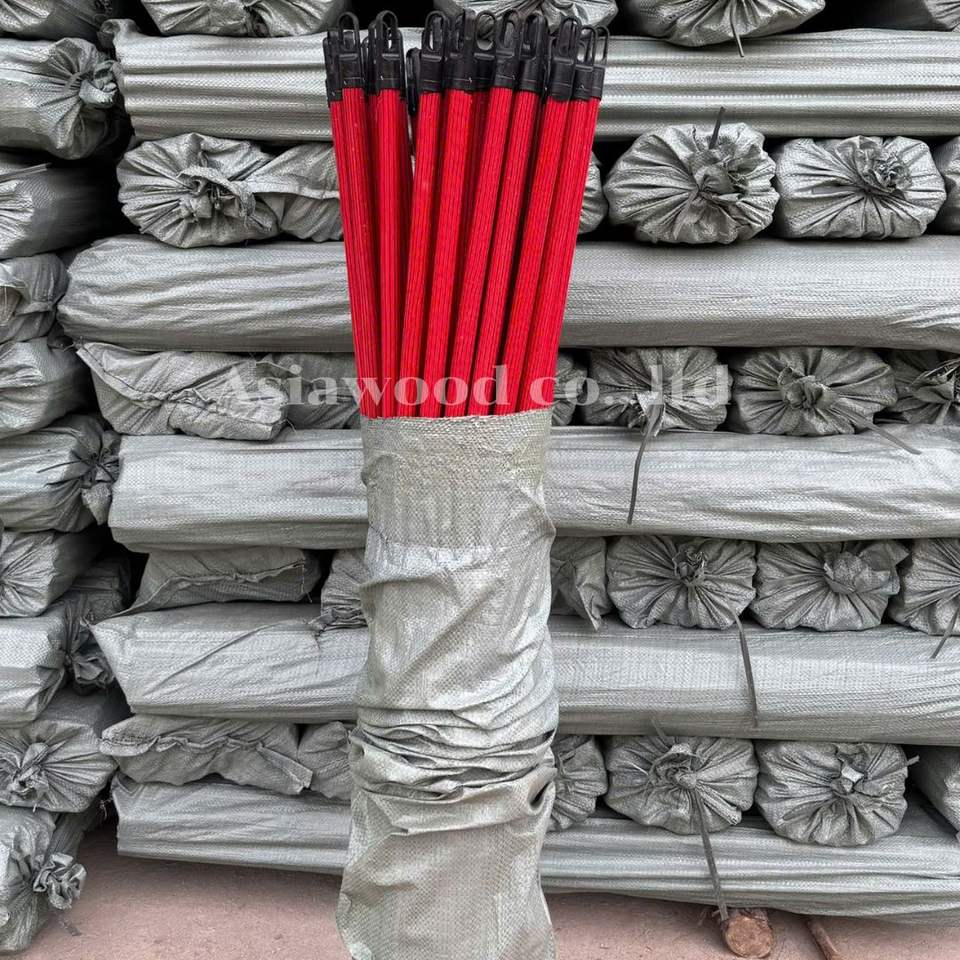 Factory Hot Sell Asiawood Eucalyptus Wood PVC Coated Broom Handle Red Striped Flagged Bristle Easy Clean Indoor/Outdoor Use