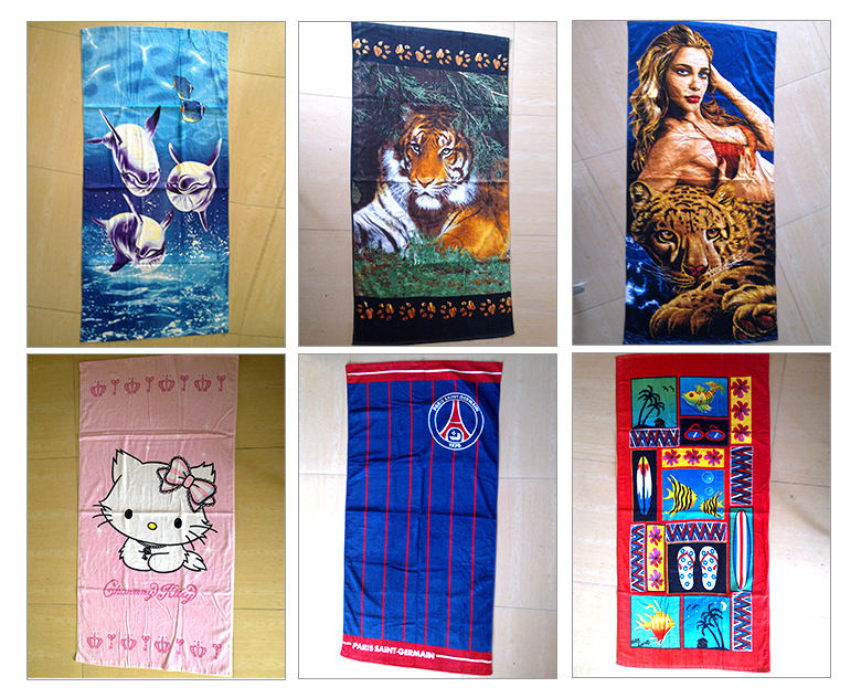 Serviettes de plage personnalisées à motif imprimé actif en pur coton, vente chaude en usine