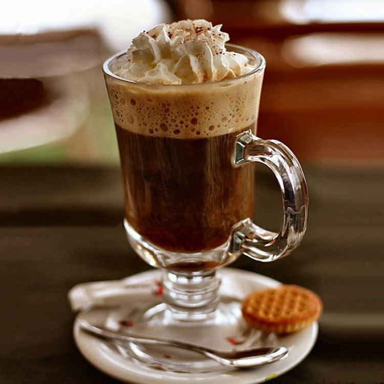 Usine vente chaude verre à boire café tasse à thé pied clair irlandais grand verre tasse à café pour chocolat chaud Latte thé café