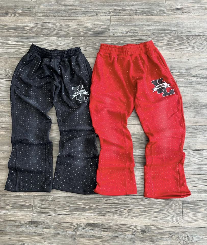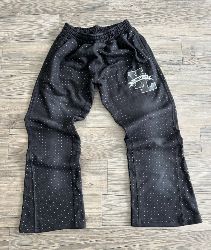 Pantalon de survêtement baggy à jambes larges pour hommes en coton épais surdimensionné avec impression de logo personnalisé strass décontracté empilé